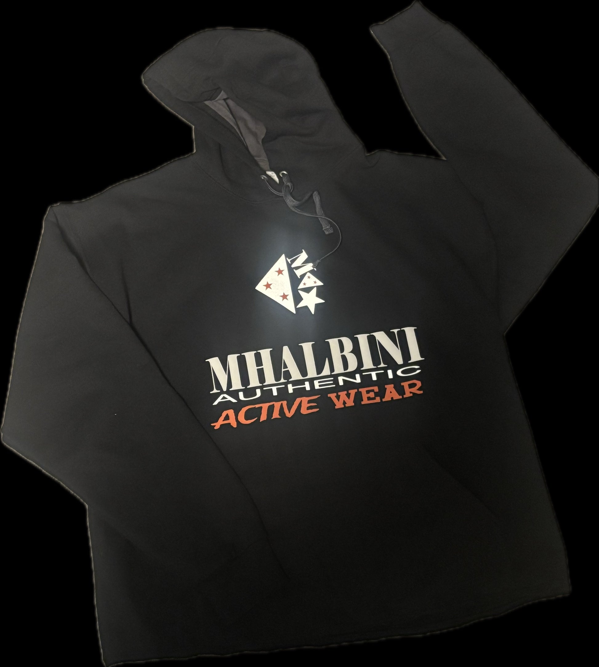 Reflective silver and Baltimore orange and white designThis MHALBINI Active wear hoodie features a reflective platinum Baltimore orange and white design, perfect for exercising. Made with 100% cotton, this pullover hoodie is great for workouts and everyday wear. Stay warm and stylish with this versatile and comfortable active wear.